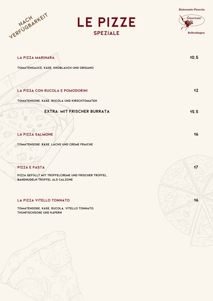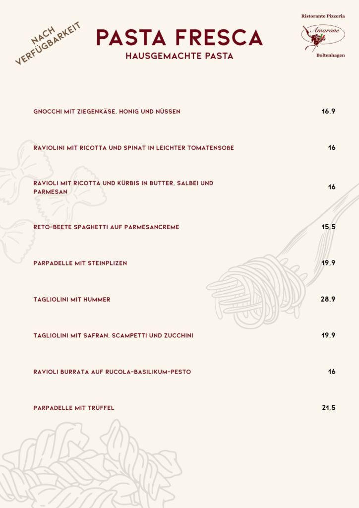 Genießen Sie mit uns unsere selbst hergestellte Pasta und Pizza specials.